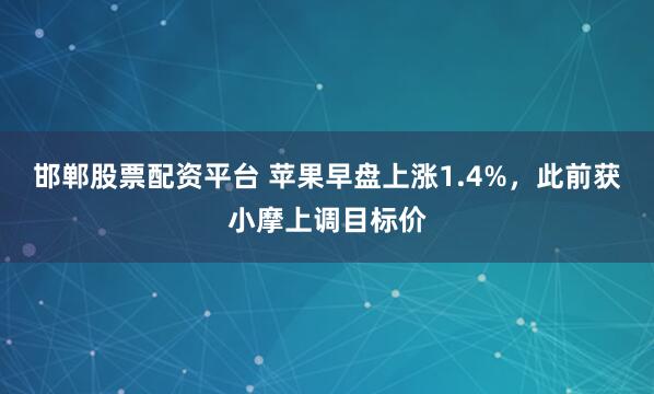 美股周五早盘,道指成份股苹果公司(AAPL)上涨1.4%邯郸股票配资平台,此前摩根大通将其目标价从255美元上调至280美元。 海量资讯、精准解读,尽在新浪财经APP 责任编辑:张俊 SF065邯郸股票配资平台...